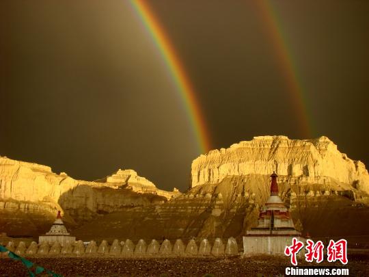 Avec un arc-en-ciel après la pluie, des forêts de terre Zhada semblent particulièrement spectaculaires.