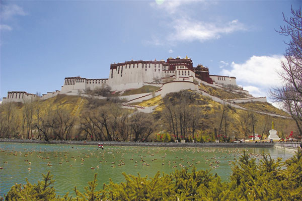 à Lhassa, au Tibet, en février, la température était plus élevée qu'auparavant. Certaines personnes portent encore leur manteau, alors que d'autres ont déjà enfilé leur cardigan. Il y a aussi des ? petits jeunes ? qui n'ont pas peur du froid et qui portent des pantalons troués. La surface du lac du parc s’est progressivement libérée des glaces. L'herbe qui a séché en hiver a également commencé à devenir au vert. Le trafic dans le parc de Dzongyab Lukhang a beaucoup augmenté.