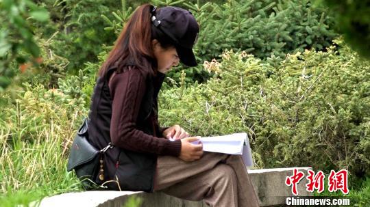 Une citoyenne de Lhassa lit dans un parc.