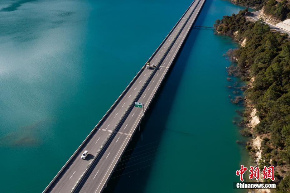 Des véhicules circulent sur le tron?on du pont Duobute sur l'autoroute supérieure Lhassa-Nyingchi.