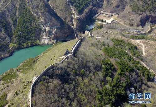 Photo aérienne prise le 13 avril, montrant les paysages printaniers de la section Simatai de la Grande Muraille, à Beijing. (Photos: Zhang Chenlin, Chen Zhonghao/Xinhua)