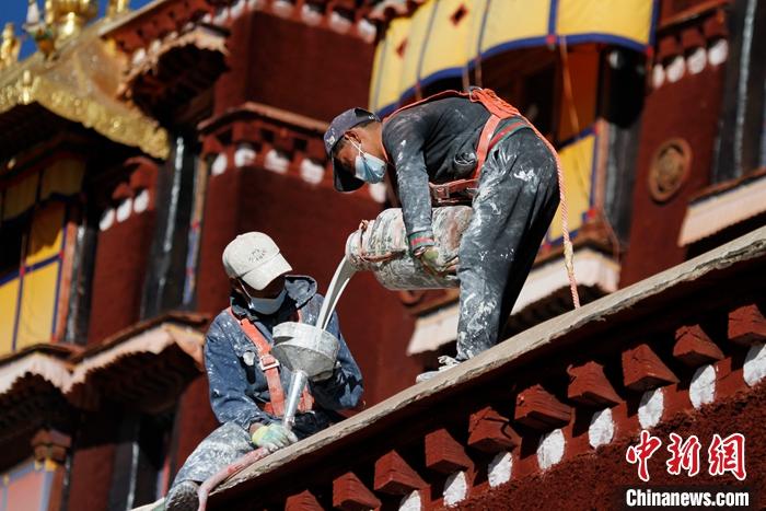 Mélangez de la cendre blanche, versez-y du sucre, du lait et de la colle d'os de b?uf. Faites-en une pate à blanchir. Après avoir filtré et versé la solution, des volontaires transportent la peinture blanche à divers endroits. Des ? Spider-Man ? suspendus dans les airs répandent ensuite ce enduit blanc sur les murs. Le 27 octobre, la peinture annuelle du Palais du Potala était en cours.