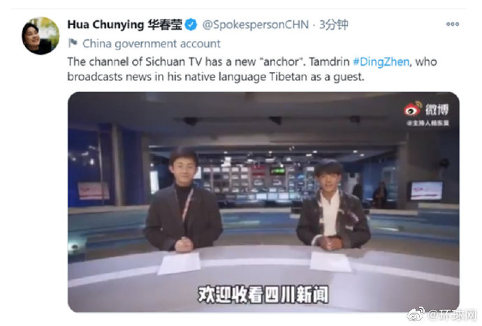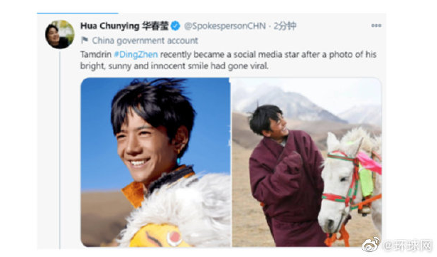 Hua Chunying, porte-parole du ministère des Affaires étrangères, a publié dimanche trois tweets pour exprimer son admiration, en écrivant : ? Tamdrin est une star des médias sociaux après qu'une photo de son sourire brillant, ensoleillé et innocent soit devenue virale. La Cha?ne de télévision du Sichuan a un nouveau présentateur. Tamdrin a diffusé des nouvelles dans sa langue maternelle tibétaine en tant qu'invité spécial. ?