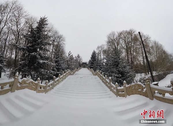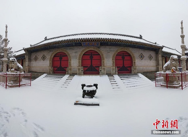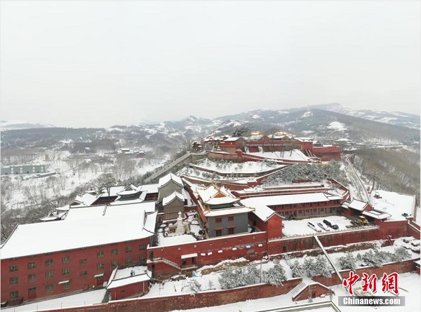 Photo prise le 18 mars, montrant le mont Wutai sous la neige. Situé dans le nord-est de la province du Shanxi (nord), le mont Wutai est un célèbre lieu saint du bouddhisme en Chine. (Photos : Liu Yongping/Chinanews)