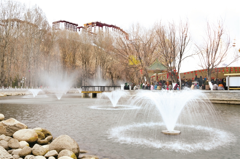 Récemment, les 16 nouvelles fontaines qui ont été ajoutées par le Bureau de gestion de la place du Palais du Potala dans deux lacs d'observation du parc Dzongyab Lukhang ont été ouvertes au public.