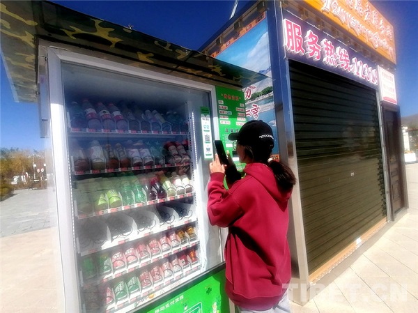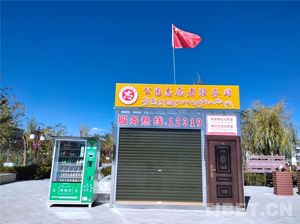 Dans le parc Qingdao de la ville de Shigatsé, dans la région autonome du Tibet, le distributeur automatique à c?té de la station de service des volontaires au milieu du parc se distingue parmi les diverses infrastructures.