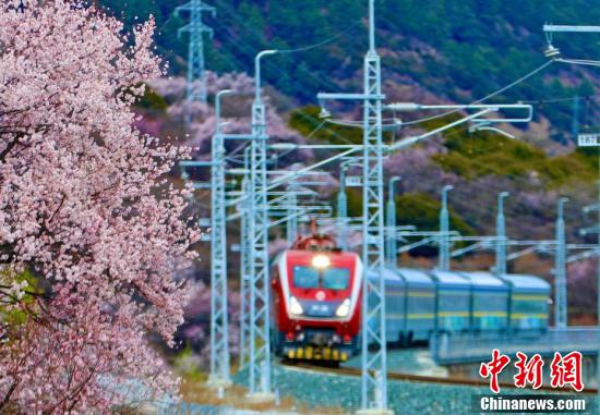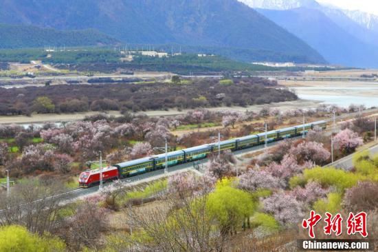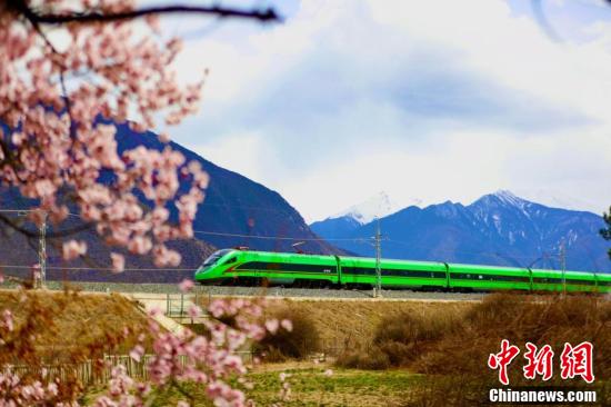 En avril, les pêchers le long du chemin de fer Lhassa-Nyingchi sont en pleine floraison. Sous le ciel bleu et les nuages ??blancs, les fleurs de pêcher rougissent et viennent compléter le tableau des montagnes enneigées au loin, attirant de nombreux touristes pour découvrir le charme unique du printemps sur le plateau. Lorsque les trains traversent la mer de fleurs, ce que vous voyez, ce sont des fleurs de pêcher partout dans les montagnes et les champs, donnant aux gens l'impression d'être dans le magnifique ? Jiangnan ?.