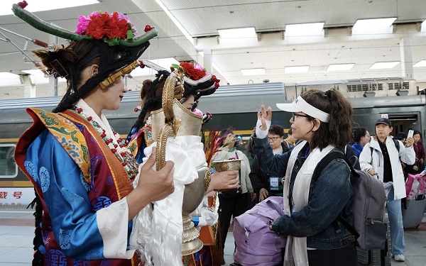 Le 22 mai à 20 heures, le très attendu train touristique ? C?ur à c?ur entre Beijing et le Xizang ? est entré lentement dans la gare de Lhassa. Lorsque le train s'est arrêté, une cérémonie de bienvenue unique s'est déroulée devant les passagers. La joyeuse danse du yak, le ? Qiema ? de bon augure et des hada blancs ont tous exprimé l'hospitalité des habitants de Lhassa, permettant aux touristes de ressentir pour immédiatement le charme unique du plateau.