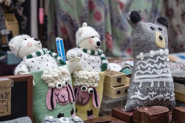 En hiver à Lhassa, les articles en laine sont essentiels. Au marché Barkhor, vous trouverez des housses de tasse et des dessous de table en laine tricotés à la main, à la fois pratiques et colorés. Les sacs en laine de yak tissés à la main, accrochés aux murs, vous feront hésiter tant le choix est vaste ! Vous pourrez également dénicher des objets ludiques comme des poupées en feutre, des carillons en feutre et des pendentifs en forme de masques de théatre tibétain.