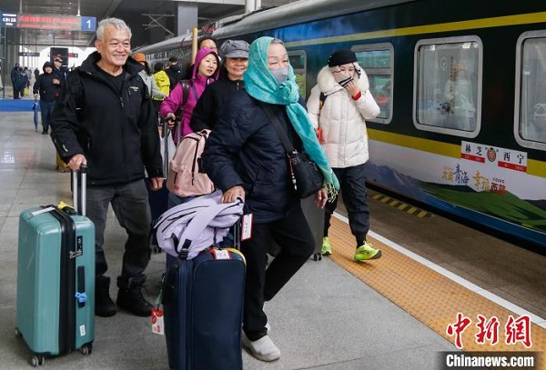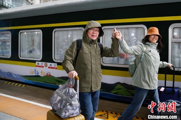 à 10 heures, le 26 mars, plus de 300 voyageurs chinois et étrangers ont embarqué à bord du train touristique dédié ? Qinghai la magnifique - Xizang l'heureuse ? reliant directement Xining dans le Qinghai à Nyingchi dans le Xizang, pour un voyage de 9 jours intitulé ? Flanerie printanière parmi les fleurs, à la poursuite des rêves sur les hauts plateaux ?. Ce train est le premier des 100 trains touristiques que la province du Qinghai prévoit de mettre en circulation, et également le premier train touristique direct du Qinghai vers Nyingchi au Xizang.