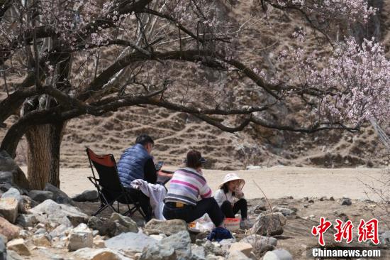 Sur la rive sud de la rivière Lhassa, dans le village de Cijuelin, les anciens pêchers sont en pleine floraison. Le 30 mars co?ncidant avec le week-end, de nombreux habitants et touristes se sont rendus sur place pour admirer ces fleurs, prendre des photos pour les réseaux sociaux, et profiter d’un pique-nique sous les arbres, savourant ainsi la beauté du printemps dans le haut plateau.