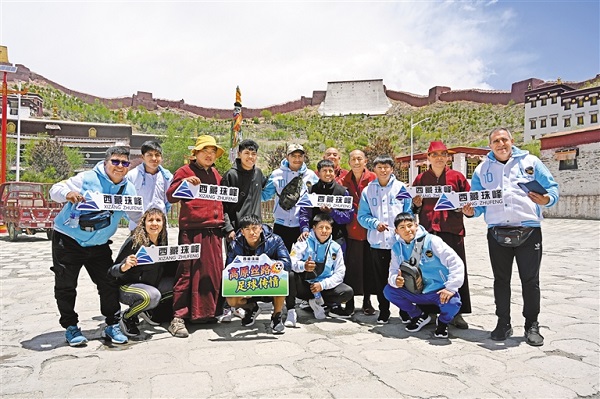 • Des touristes étrangers arrivés par avion charter visitent des temples anciens, découvrent le patrimoine culturel immatériel et échangent autour du football à Shigatse