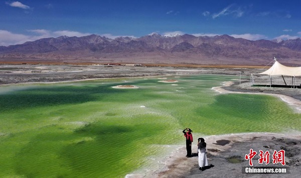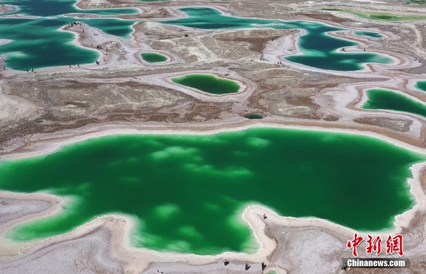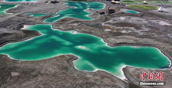 Récemment, une vue aérienne a été prise du lac de jade situé dans le bourg de Qaidam, dans la préfecture autonome mongole et tibétaine de Haixi, de la province du Qinghai. En raison des différents minéraux qu’elle contient, l’eau du lac présente des couleurs variées comme le vert émeraude, le jaune doré et le bleu profond, elle est cristalline et translucide, semblable à un jade incrusté dans la terre, attirant de nombreux touristes venus immortaliser ce lieu.