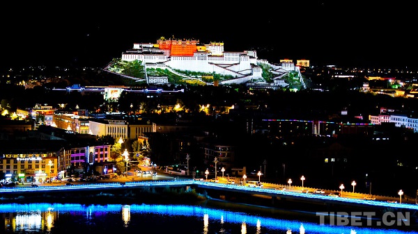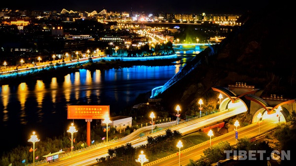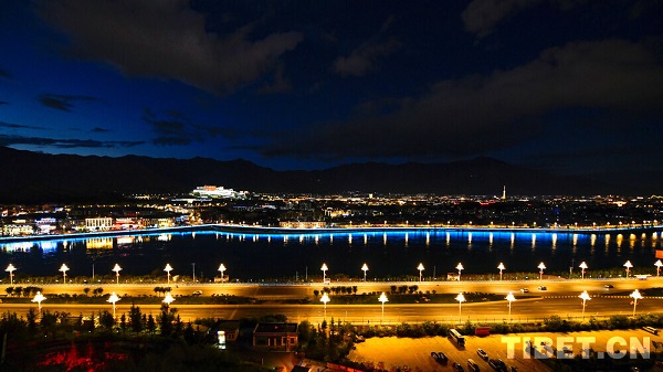 La nuit tombe lentement sur la vallée de la rivière Lhassa, telle un rideau de velours bleu profond. Je me tiens sur la crête du parc du mont Nanshan, observant la ville de Lhassa sur la rive opposée s'illuminer peu à peu. Au loin, les contours du Palais du Potala se dessinent nettement sous les faisceaux lumineux. Les rubans de lumière de la ville serpentent le long de la rue de Beijing et de la rue du Jiangsu, les lampadaires orange forment une voie lactée sinueuse, et les phares des voitures tracent des trajectoires éphémères comme des étoiles filantes.