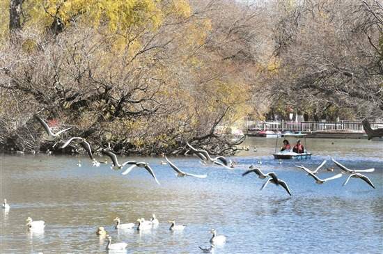Chaque année entre la mi-octobre et la mi-décembre, c’est la période où les oiseaux migratoires se déplacent vers le Sud pour passer l’hiver. Ils affluent aux ? points de relais ? tels que le Parc Zongjiao Lukang (aussi appelé Parc du roi dragon), la zone humide Lalu, les berges de la rivière Lhassa et le réservoir dans la montagne Tête du tigre du comté Linzhou, où ils se reposent et se ravitaillent avant de continuer leur trajet.