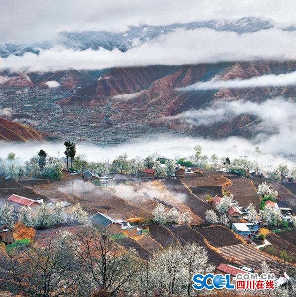 • Le plateau ouest du Sichuan ? couvert ? de fleurs de poiriers