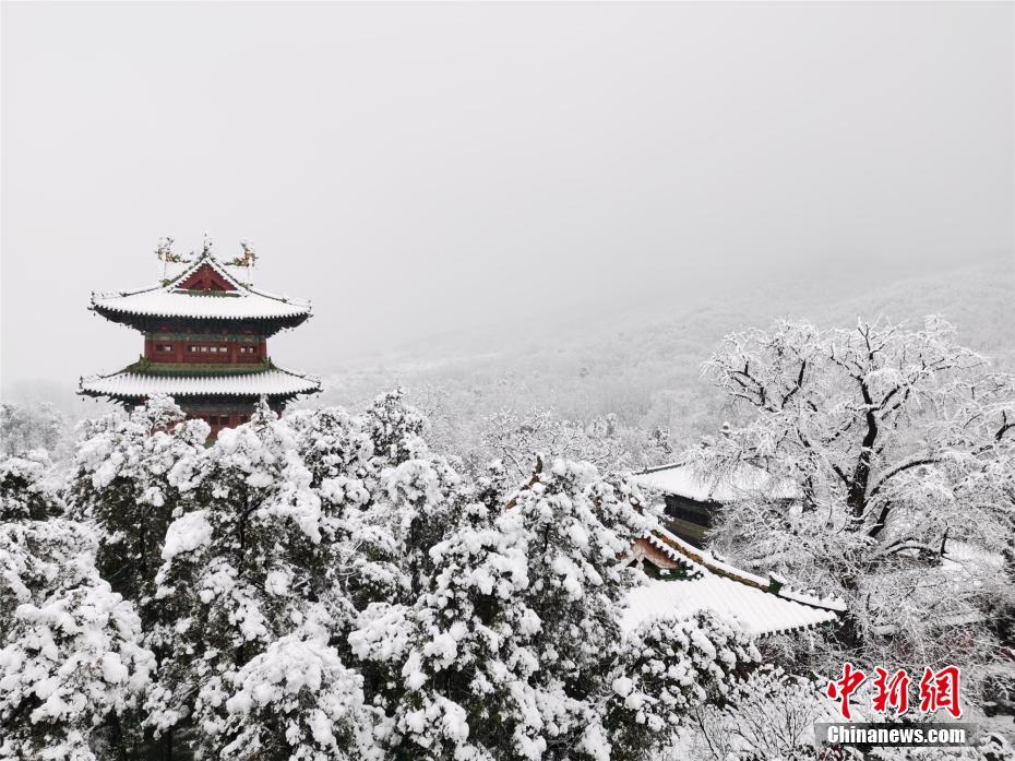 Photos prises le 7 janvier, montrant le temple Shaolin, situé au pied du mont Songshan, dans la province du Henan, couvert de neige. (Photo : Yue Long/Chinanews)