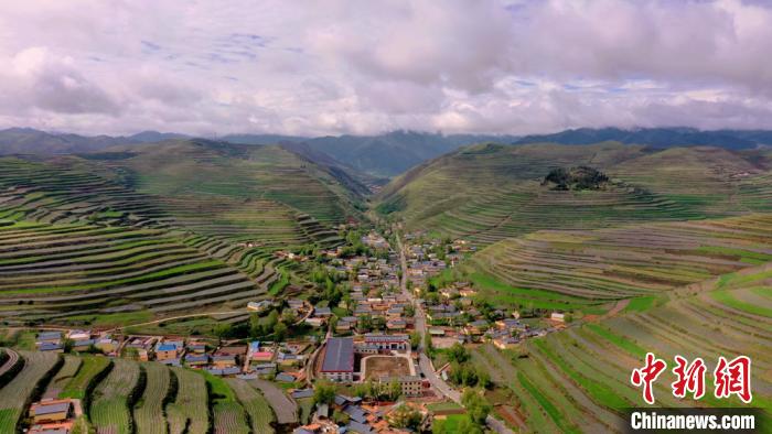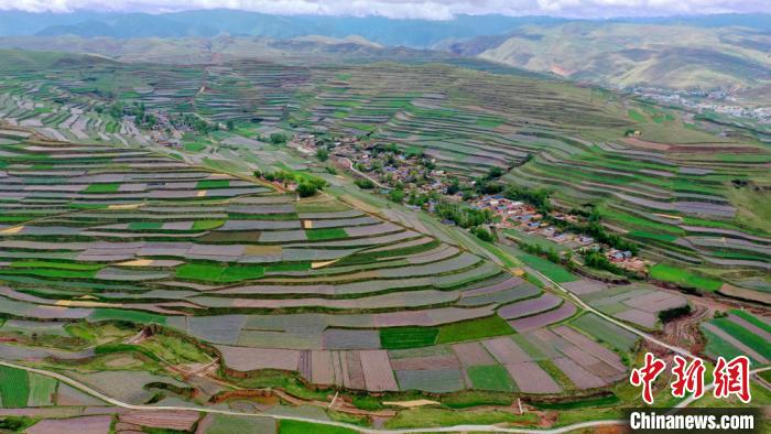 Au début de l'été, après une pluie estivale, dans le canton de Liulin dans le comté de Zhuoni, dans la préfecture autonome tibétaine de Gannan, dans la province du Gansu, on peut voir des séries de terrasses sous les nuages.