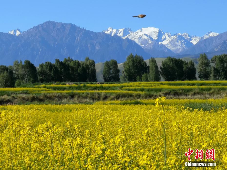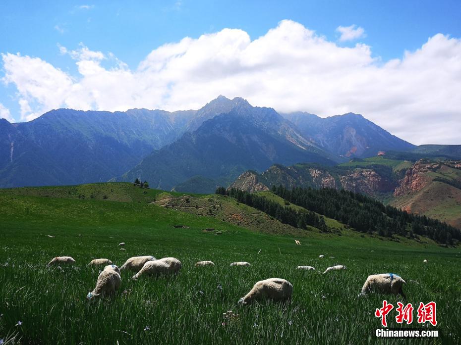 A la fin du mois de juin, sous un soleil brillant, les monts Qilian présentent un charme enchanteur avec leurs sommets couverts de neige, leur prairie animée et les fleurs parfumées à Zhangye, dans la province du Gansu (nord-ouest). (Photos : Wu Xuezhen/Chinanews)
