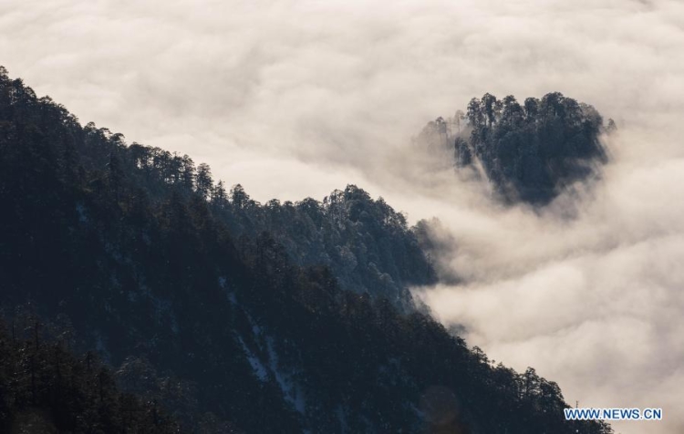 Paysage des nuages au-dessus du mont Guangtou dans le district de Tianquan, dans la province chinoise du Sichuan (sud-ouest), le 10 décembre 2020.