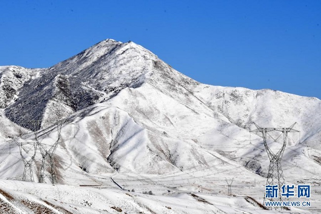 Photo prise le 17 janvier, montrant les paysages hivernaux du mont Wuqiao, qui se situe à Wuwei, dans la province du Gansu (nord-ouest). Le mont Wuqiao, qui fait partie de la cha?ne des monts Qilian, dévoile un charme enchanteur avec ses sommets couverts de neige. (Photos : Fan Peikun/Xinhua)