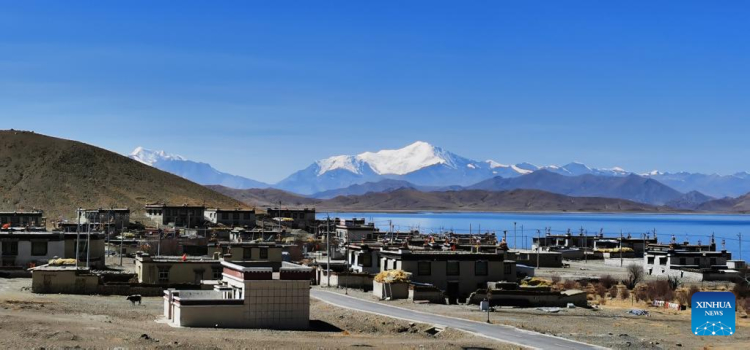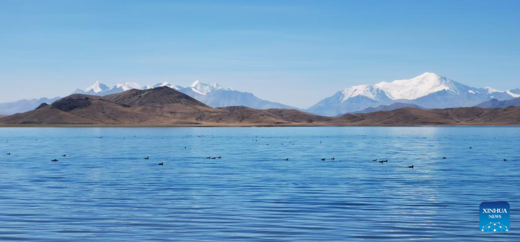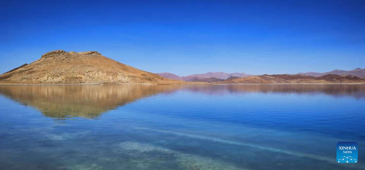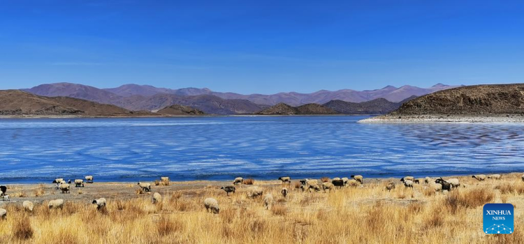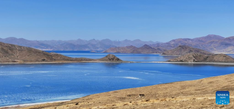 Photo prise avec un téléphone portable montrant un paysage du lac Yamzbog Yumco à Shannan, dans la région autonome du Tibet (sud-ouest de la Chine), le 19 mars 2022. (Shen Hongbing / Xinhua)