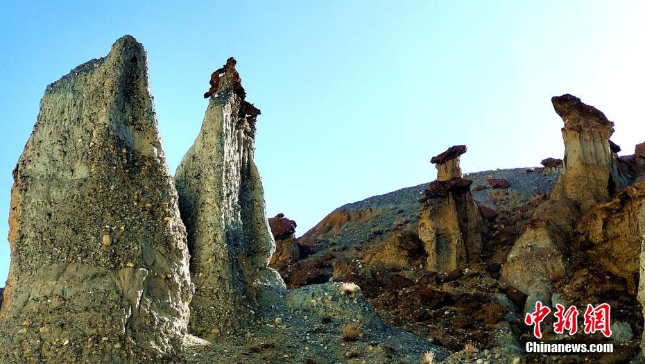 Le 23 avril, le journaliste s'y est rendu et a constaté qu'en raison de l'altération à long terme, le relief présente ici la forme de champignons de haut en bas, avec une variété d'autres formes : humains, poissons, tortues, marmottes, grenouilles et oiseaux... On dit que le fond du paysage ici est principalement constitué de gravier et de l?ss, et que le sommet est un lit minéral à forte teneur en fer. C'est très coloré sous le soleil du printemps.