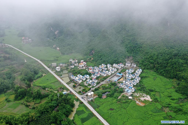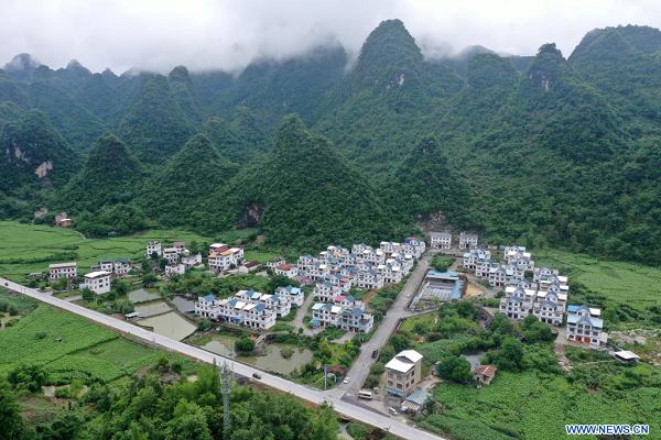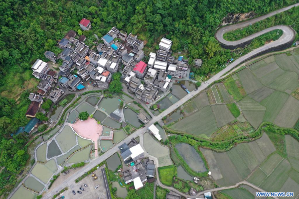 Photo prise le 11 mai 2022 montrant le paysage du bourg de Xia'nan dans le district autonome Maonan de Huanjiang, dans la région autonome Zhuang du Guangxi (sud). (Xinhua/Lu Boan)