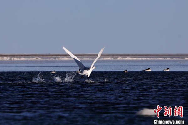 Le 17 décembre, des photographes ont capturé un groupe de cygnes chanteurs en vol et en croisière dans la région de Quanwan du lac Qinghai. Chaque hiver, le lac Qinghai accueille des centaines de cygnes chanteurs qui viennent passer l'hiver. Le lac Qinghai n'est pas seulement un plan d'eau important pour maintenir la sécurité écologique du nord-est du plateau Qinghai-Tibet, mais aussi une barrière naturelle pour contr?ler la propagation de la désertification de l'ouest vers l'est. C'est aussi l'intersection des deux itinéraires des migrations d'oiseaux migrateurs en Asie centrale et en Asie de l'Est.