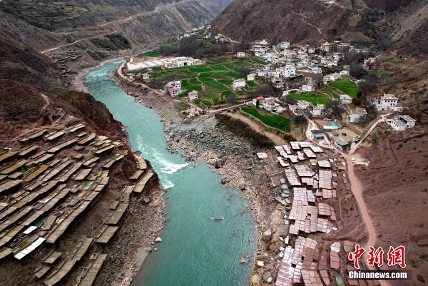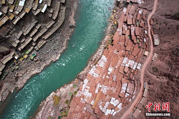 Sur les deux c?tés de la rivière Lancang dans le canton ethnique Naxi, comté de Mangkam, ville de Chamdo, région autonome du Tibet, il y a un ancien champ de sel avec des milliers de blocs. Selon les archives historiques, l'histoire locale du séchage du sel remonte à plus de 1 000 ans. Les champs de sel construits avec des piliers en bois sont répartis sur les deux c?tés de la rivière selon le relief montagneux de la vallée .