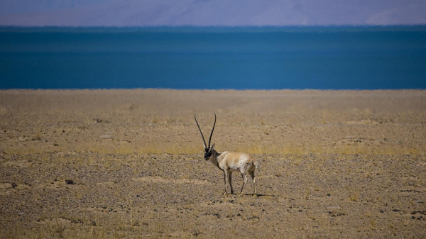 En photo : Antilope tibétaine au bord du lac de Serling