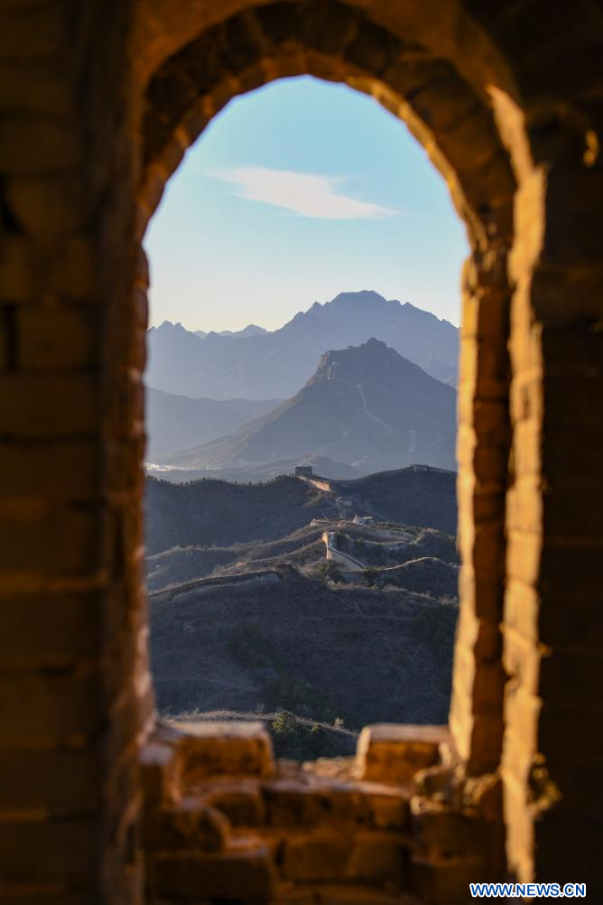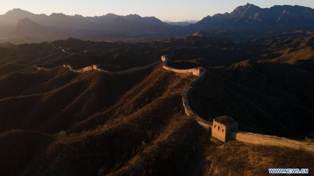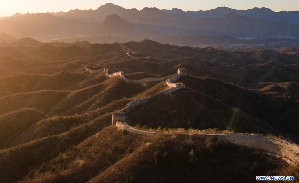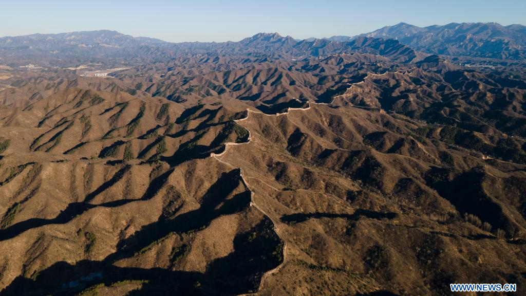 Photo aérienne prise le 14 novembre 2023 montrant le paysage de la section de Gubeikou de la Grande Muraille à Beijing, capitale de la Chine. (Xinhua/Chen Zhonghao)