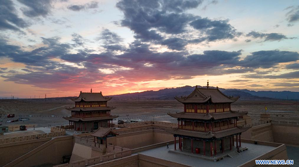 Photo aérienne prise le 13 juillet 2023 montrant la Passe de Jiayu, une section célèbre de la Grande Muraille, à Jiayuguan, dans la province chinoise du Gansu (nord-ouest). (Xinhua/Chen Zhonghao)