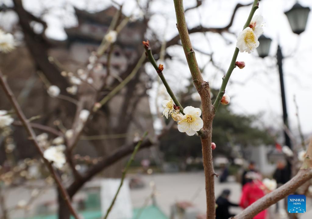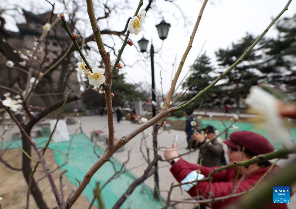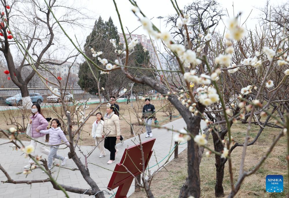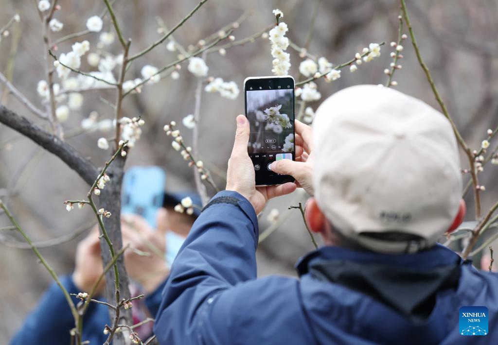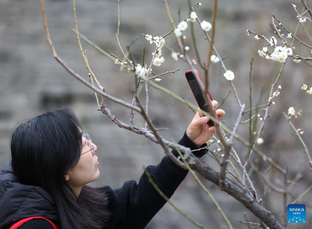 En photos : les fleurs de prunier embellissent le parc des ruines du rempart de la dynastie des Ming à Beijing