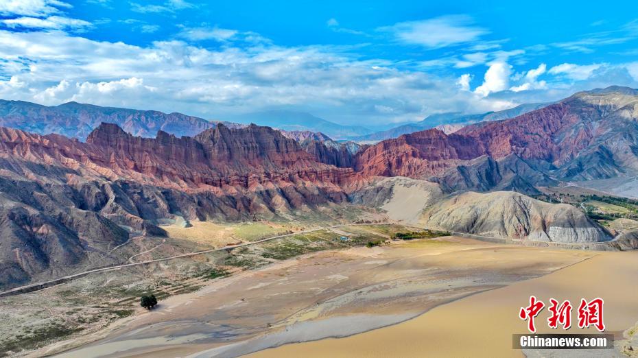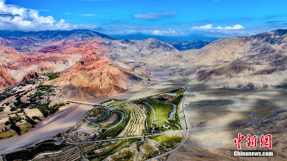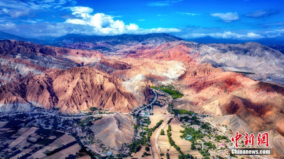 En automne, sur le haut plateau, des passionnés de photographie capturent des vues aériennes du parc géologique national de Guide, situé dans le district de Guide, dans la préfecture autonome tibétaine de Hainan, province du Qinghai, en amont du fleuve Jaune. Le paysage est riche et splendide, avec des montagnes ondulantes sous un ciel dégagé. Le fleuve Jaune serpente entre les montagnes, et les monts multicolores d'Ashigong présentent un spectacle chatoyant. Leurs couleurs vives se reflètent dans les nuages, créant une magnifique scène de montagnes et de rivières.