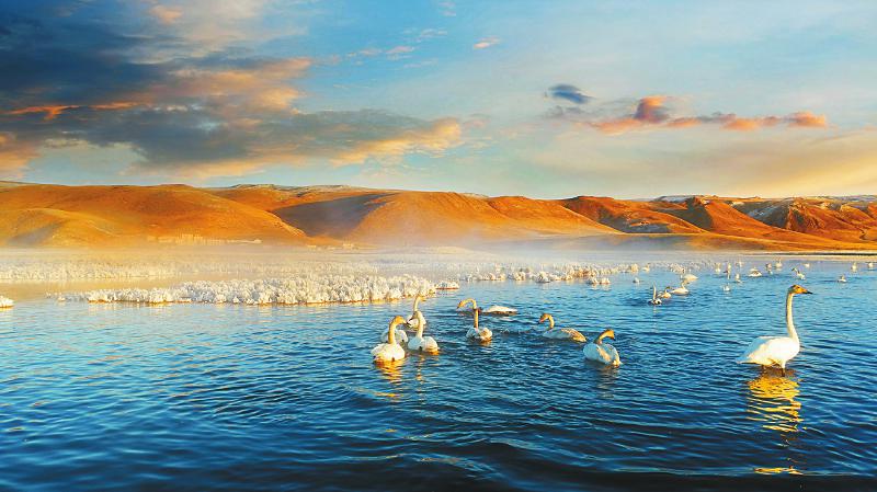 Le 18 février, une centaine de grands cygnes jouaient dans la rivière Luojia Qiongguo, qui ne gèle jamais, dans le district de Zoige, dans la préfecture d'Aba de la province du Sichuan. Tous les ans de novembre à mars, les grands cygnes s'envolent de Sibérie et du nord-est de la Chine pour passer l'hiver dans la belle zone humide alpine de Zoige, en Chine.