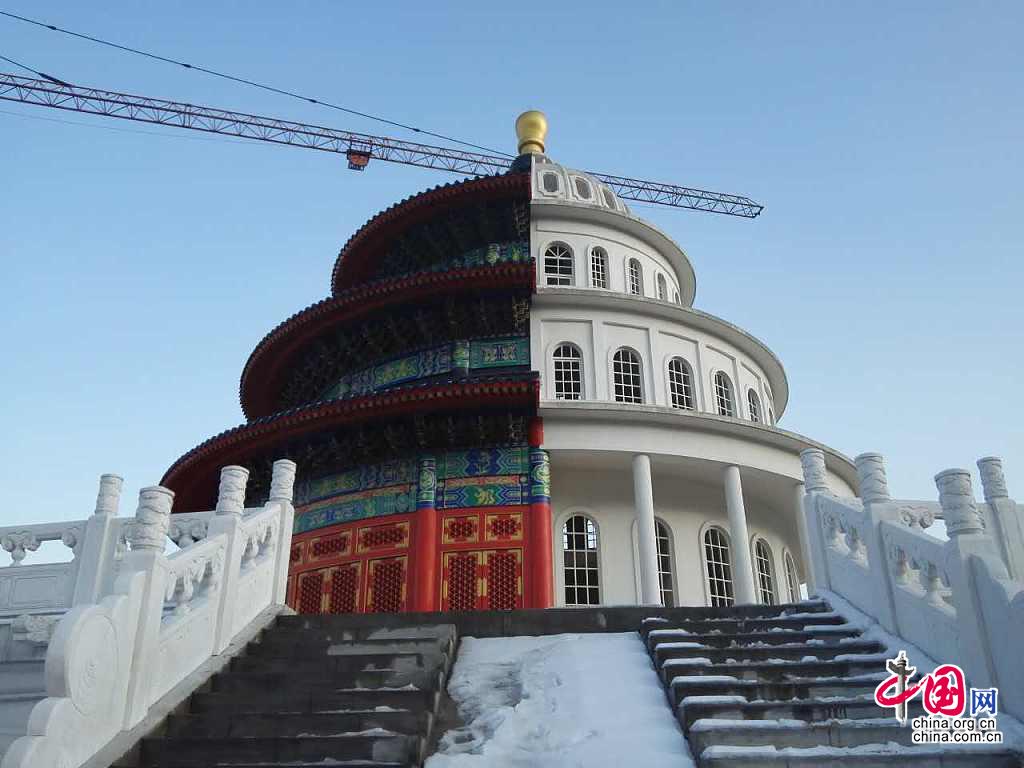 Photo prise le 3 décembre 2015 à Shijiazhuang, dans la province du Hebei, montrant un batiment combinant les styles oriental et occidental.
