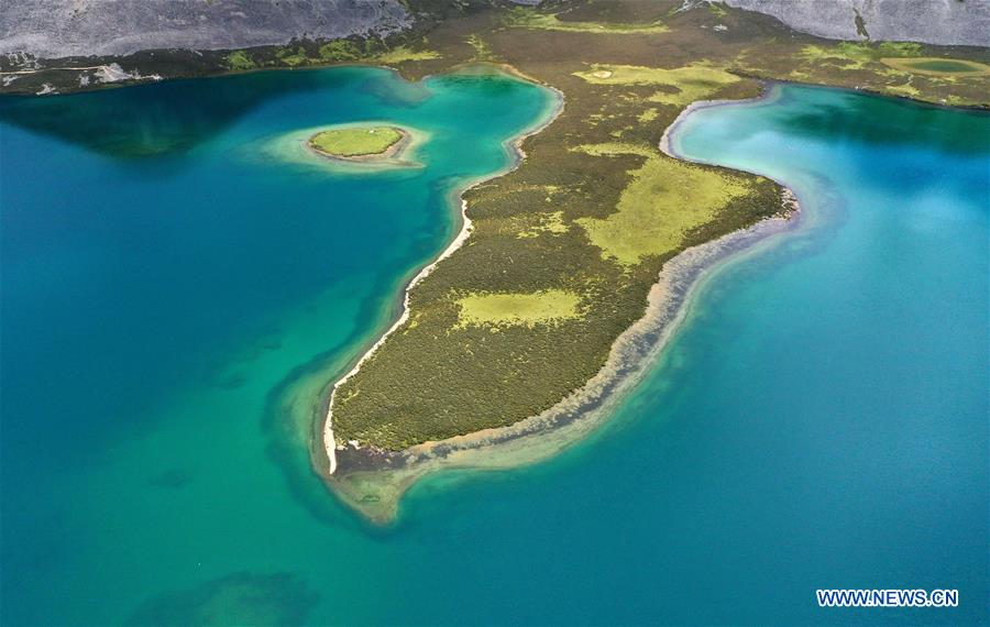 Le paysage d'un lac du district de Maizhokunggar, dans la région autonome du Tibet (sud-ouest de la Chine), le 16 ao?t 2019.