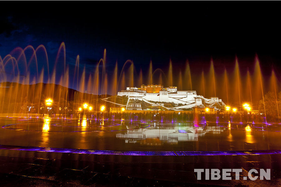 Sur la place, le Palais du Potala et la fontaine forment une composition intéressante.