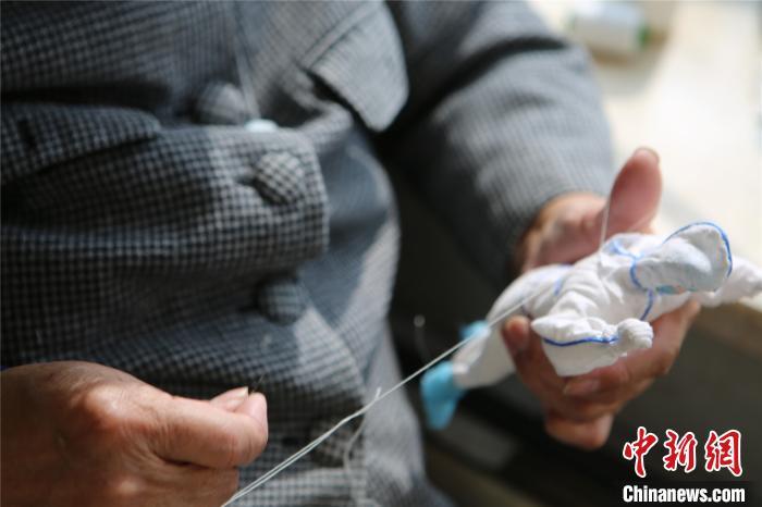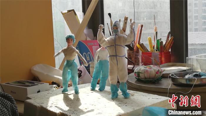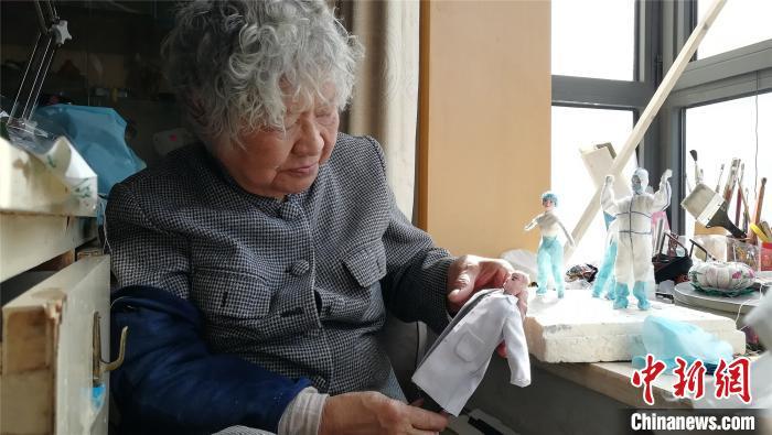 Xu Peng montre des figurines en soie qu'elle a fabriquées chez elle à Zhengzhou, capitale de la province du Henan (centre de la Chine). Alors que l'épidémie de coronavirus continue de faire la une des journaux, l'artiste a réagi à la situation par son travail. Xu Peng associe des figurines de travailleuses médicales à des figurines d'autres héro?nes anciennes, afin de rendre hommage à ceux et celles qui luttent pour contenir la propagation du coronavirus. Fabriquées en soie fine, gaze et soie damassée, ses figurines en soie sont une sorte d'artisanat traditionnel.