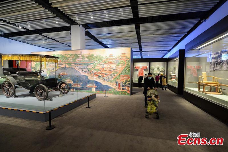 Des gens visitent l'exposition ? Une histoire de jardinⅡ- Les 270 ans du Palais d'été ?, organisée par le Musée du jardin chinois et de l'architecture paysagère, le 2 décembre 2020.