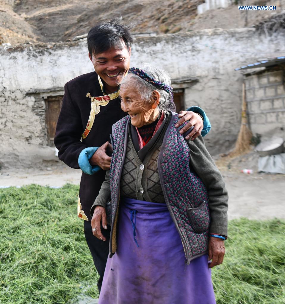 Avant la réforme démocratique au Tibet, Tsering Yangzom, 87 ans, était une serve et vivait sous un régime de servage féodal cruel. Tsering Yangzom est née dans une famille de serfs et n'a jamais pu oublier les moments difficiles où sa famille n'avait d'autre choix que de se nourrir des restes de ménages plus aisés. ? Mes parents m'ont amenée dans ce monde, mais ma vie appartenait au propriétaire de serfs, comme eux ?, se souvient-elle. La réforme démocratique de 1959 a libéré Tsering Yangzom du servage. Elle a re?u des terres agricoles et du bétail. Lorsque le conflit frontalier sino-indien a éclaté en 1962, Tsering Yangzom s'est immédiatement engagée dans une unité de logistique et de transport et a suivi l'Armée populaire de libération jusqu'au front, défendant sa liberté durement conquise. ? Maintenant, je n'ai plus à me soucier de la nourriture, des vêtements et de l'abri ?, a confié Tsering Yangzom. ? J'ai l'intention de vivre une vie longue et heureuse ?, a-t-elle ajouté. (Purbu Zhaxi / Xinhua)