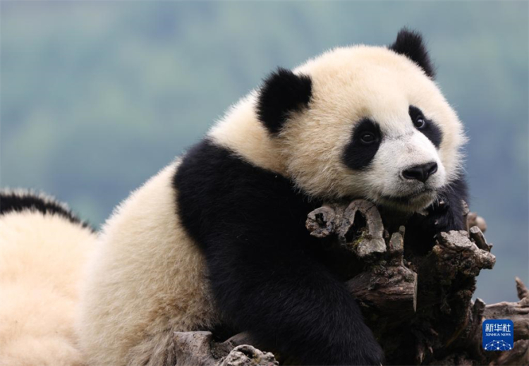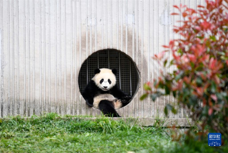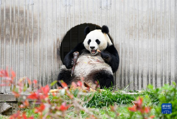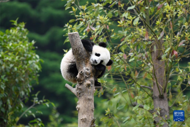 Au printemps, les pandas du Centre de recherche et de conservation des pandas géants de Wolong, situé dans la province du Sichuan (sud-ouest), sont sortis pour profiter du soleil. Photos prises le 24 avril 2022. (Photos : Xu Bingjie/Xinhua)