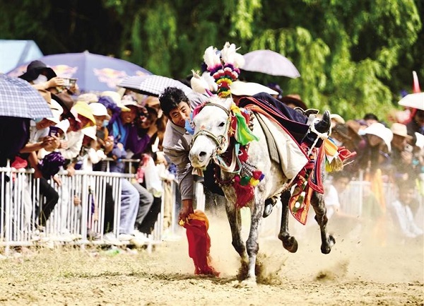 Ce jour-là, à 11 heures, la course de chevaux du festival Ongkor du village de Carbanang a officiellement débuté. Les cavaliers, vêtus de costumes traditionnels, coiffés de chapeaux à pompon rouge, avec des arcs sur le dos, et chevauchant des chevaux finement habillés, ont effectué une course de chevaux de vitesse de 4000 mètres, le ramassage de khata à cheval, le tir à l'arc, l'équitation et d'autres compétitions passionnantes. Sur place, le public a agité les bras et crié pour les concurrents. Galopant sur le terrain, les cris des joueurs se sont mêlés aux cris du public.