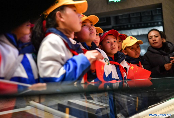 Des écoliers visitent un mémorial marquant l'émancipation de plus d'un million de serfs à l'occasion de la 15e Journée d'émancipation des serfs, à Lhassa, dans la région autonome du Tibet (sud-ouest de la Chine), le 28 mars 2023. La 15e Journée d'émancipation des serfs tombe mardi. (Photo : Jigme Dorje)