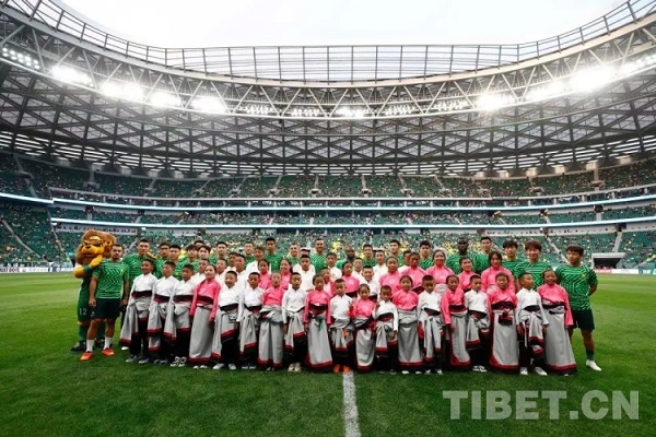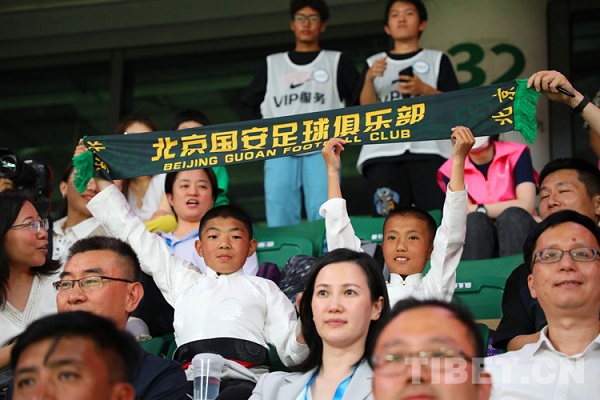 Ah Bin et cinq amis sont apparus sur le terrain en tenue tibétaine, tenant la main des joueurs, et ils ont immédiatement attiré l'attention du public. Le grand écran a également diffusé la vidéo du ? Voyage de la jeunesse tibétaine de Yushu de Qinghai à Beijing ?, montrant le comportement d'adolescents du football de la région enneigée. L'écran LED circulaire défilait et diffusait les noms de 40 adolescents de Yushu en chinois et en tibétain.