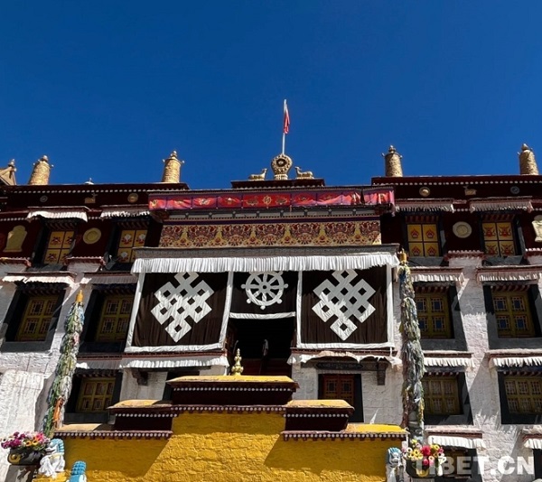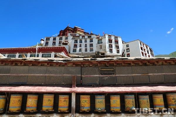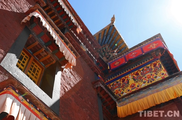 L'ensemble du complexe du monastère, construit sur une colline, comprend des palais blancs et un palais rouge. Le palais rouge, situé au centre, est principalement dédié à la vénération des divinités bouddhistes et aux affaires religieuses, tandis que les palais blancs qui l'entourent servent de résidence aux moines. En raison de sa ressemblance architecturale avec le palais du Potala, il est surnommé ? le petit palais du Potala ?. La photo montre le hall principal du monastère de Tsande.