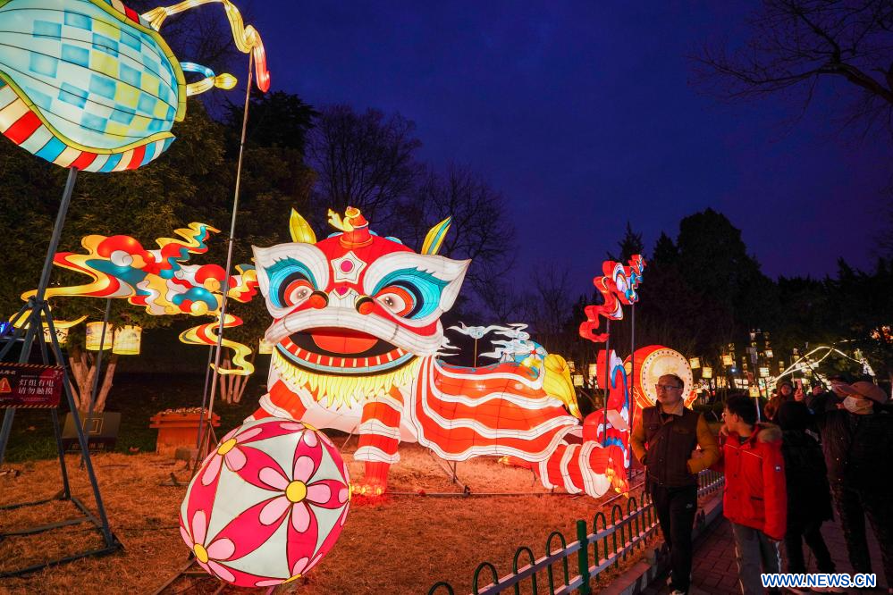 Des lanternes au parc Bailuzhou, à Nanjing, dans la province chinoise du Jiangsu (est), le 29 janvier 2024. Environ 330 ensembles de lanternes décoreront sept zones urbaines de Nanjing pendant le Nouvel An chinois à venir. (Photo : Li Bo)