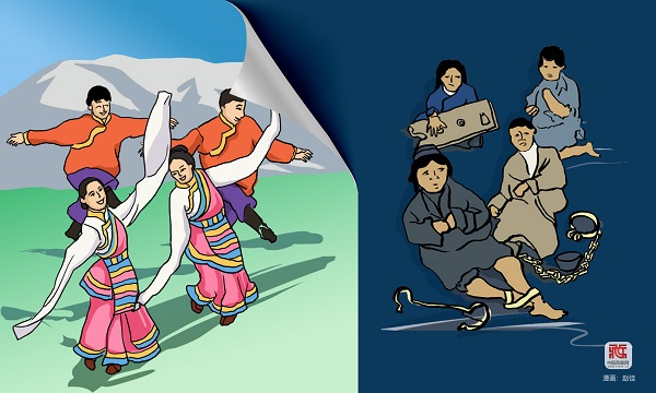 Dans l'ancien Xizang, la majorité des serfs étaient au bas de la société et étaient appelés des ? outils parlants. ? Les trois grands seigneurs soumettaient les serfs à une exploitation et une oppression barbares et cruelles. Les serfs dormaient dans des étables, étaient montés comme des chevaux et travaillaient encha?nés... Ils étaient fréquemment torturés, notamment en leur coupant la langue, en leur coupant le nez, en portant des chapeaux de pierre et en leur coupant les mains et les pieds. Les serfs ont été privés de leur liberté personnelle et leurs droits humains et leur dignité ont été insultés et piétinés sans raison. Leurs conditions de vie étaient épouvantables.