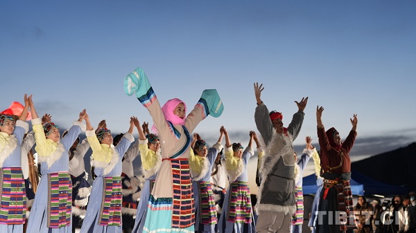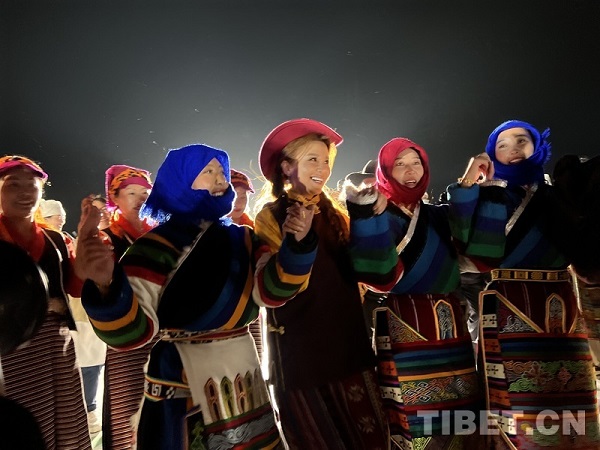 Alors que les chants se faisaient entendre, tout le monde s'est dirigé spontanément vers le site du feu de camp pour admirer les spectacles des représentants artistiques des 8 districts de Lhassa. Lors de l'activité ? Apprendre à danser le Guozhuang ensemble ?, les acteurs ont incité des invités, des touristes et des habitants locaux à participer à la danse de Guozhuang, dansant ensemble dans une ambiance joyeuse et chaleureuse.